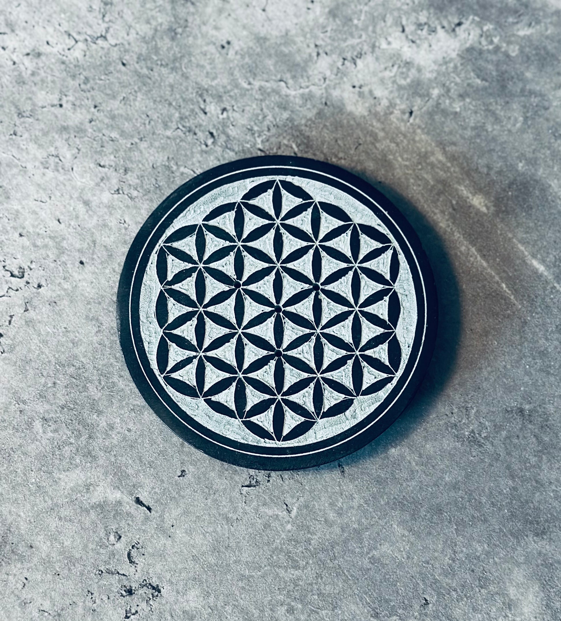 ROUND SOAPSTONE CARVED PATTERN INCENSE HOLDER